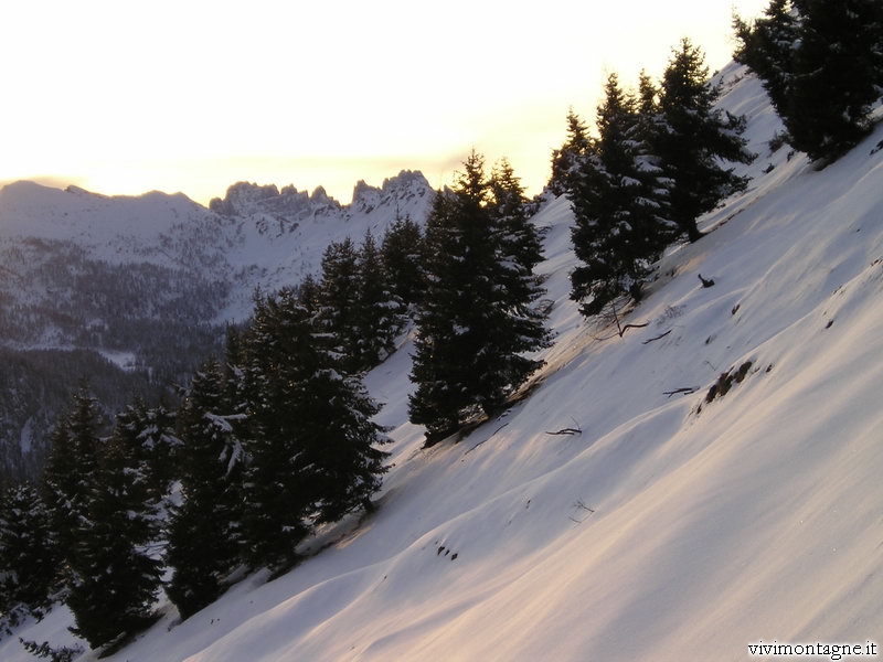 pendenza ed attraversa un bel bosco di abeti, ogni tanto gli spazi si aprono, regalandoci dei splendidi